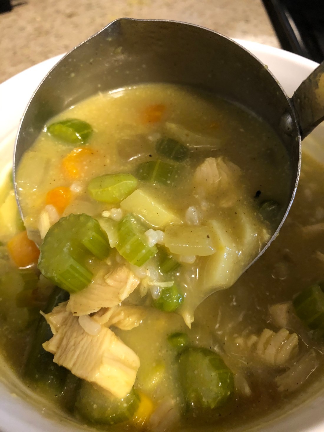 Vegan: Use vegetable stock instead of chicken or turkey and delete the meat. Add a drained can of your favorite beans.