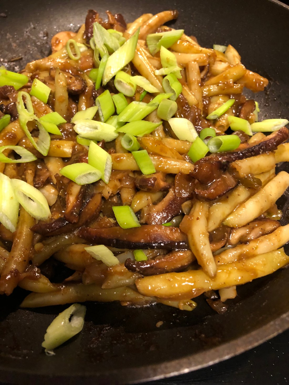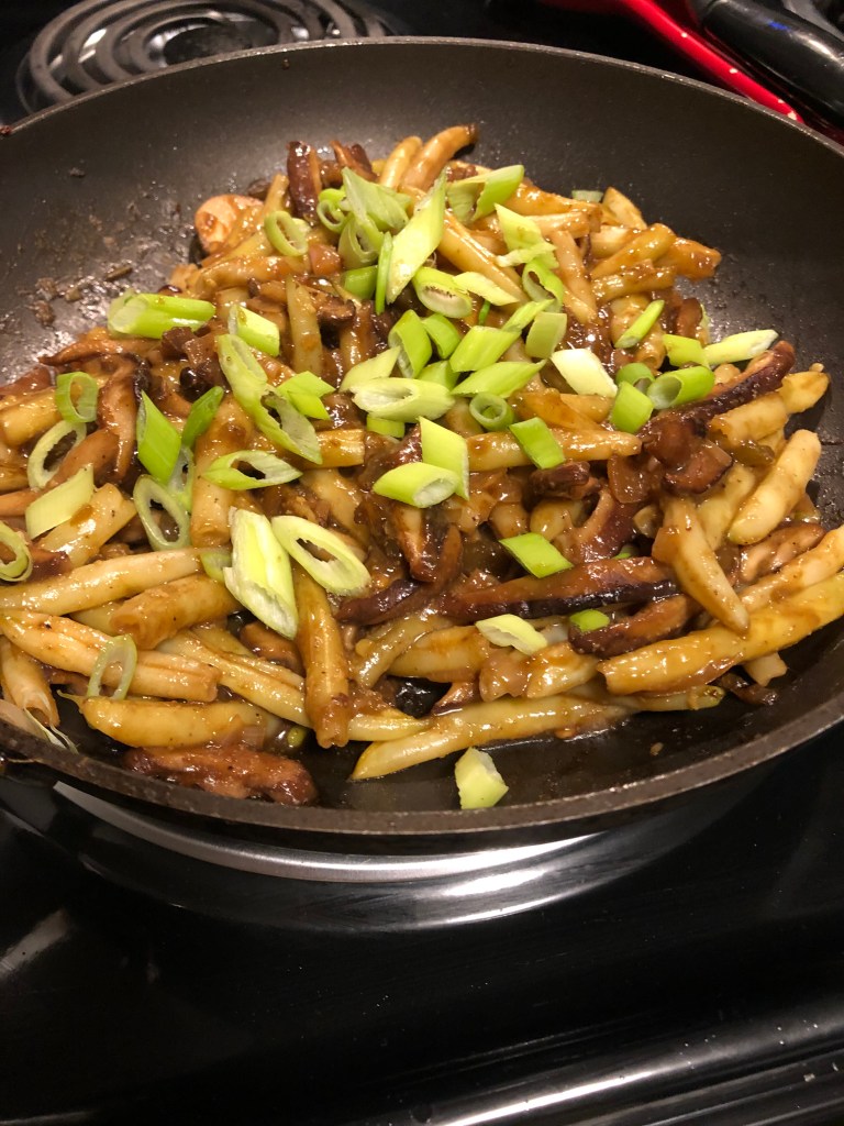 Season with salt, pepper, and garlic powder then cook stirring occasionally so that the onion doesn’t burn. After about 3-4 minutes, reduce heat to medium low and cover so that the lower cores of the endive soften and continue cooking for another 3-4 minutes or until the endive cores are softened.