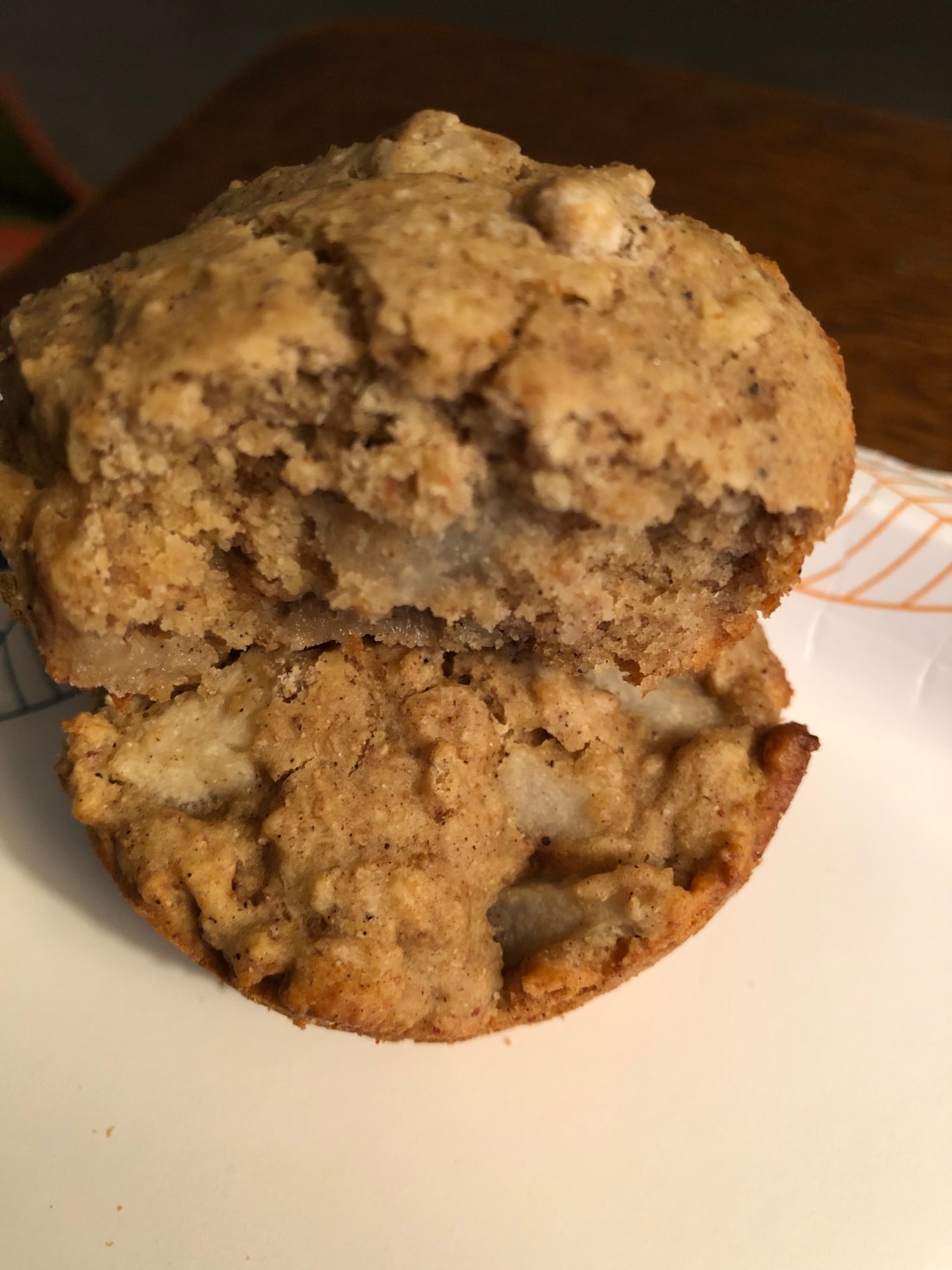 Most gluten-free muffins (and breads) are very gummy, overly moist. These are not! They have a very soft crumb but are not crumbly or overly dry. By finely dicing an Asian pear, these have a great crunch along with the spices. Just delicious! And fairly quick and easy to put together and bake (about 30 minutes altogether). Of course, apple can be used instead of pear.