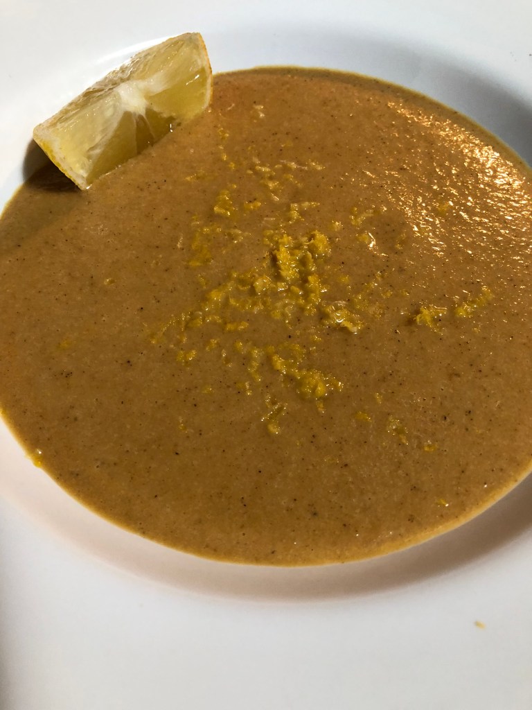 Start with the 1/2 cup and add more if the mixture needs to be thinned to your taste. If the carrot mixture is really hot, cover the top of the blender with a kitchen towel and don’t fill it more than 1/2 full or you’ll have an explosion of hot soup all over your counter! Start blending on the lowest speed and as it purees, increase slightly. Should only take 30-45 seconds to blend. Serve with lemon zest and a wedge of lemon on the side. Serving it on the side allows the person eating that bowl to add as little or much of the lemon as they like. [I learned this trick from a Vietnamese chef and it really does mellow out the curry.]