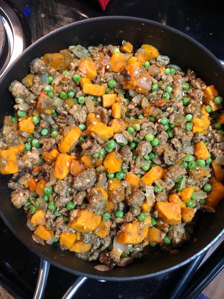 1 pound ground turkey (this would work just as well with ground pork, Italian sausage or hamburger, just be sure to drain off the fat after cooking)