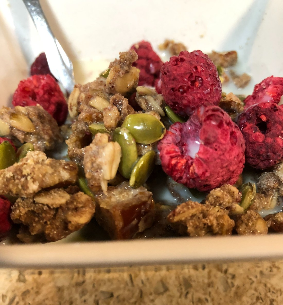 Using either a torch or the broiler, caramelize the sugar. This should take about 1 minute per ramekin with the torch and about 3-5 minutes under the broiler. Date sugar doesn’t caramelize as easily as cane sugar and will not get hard. Let sit for about 5 minutes before serving.