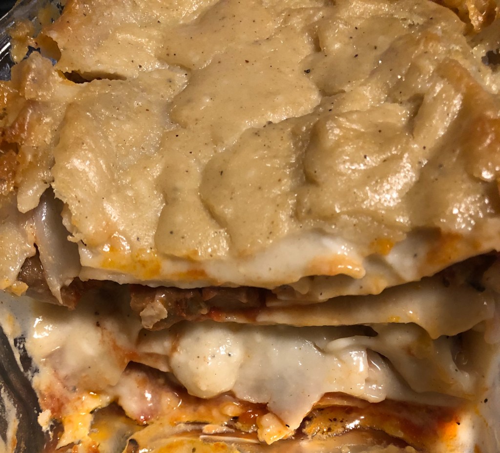 Preheat oven to 350 degrees. Spray the bottom and sides of a 9×13″ baking pan with non-stick spray. Line the bottom of the pan with slices of eggplant.* Add a layer of the meat sauce and repeat ending with a layer of eggplant (3 layers of eggplant and 2 layers of sauce). There may be a little meat sauce left over. Slowly pour the white sauce on top of the last layer of eggplant (I didn’t quite have enough eggplant to cover the entire top but it still worked okay). The white sauce on mine was only about 1/2 inch thick but if your pan is deep enough, use all the white sauce, it’s that yummy on the top! Sprinkle the top with: