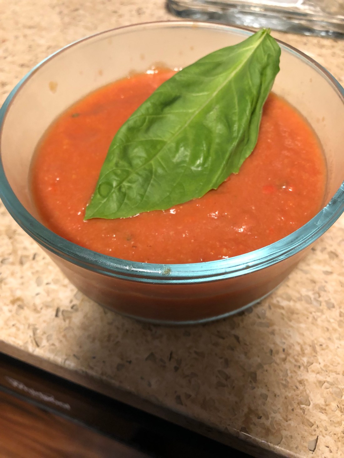 Chill thoroughly before serving. WARNING: This makes 16 cups of gazpacho so unless you’re hosting a large dinner party (or want to freeze some), this recipe can be cut in half. Garnish with extra chopped basil, diced cucumber and tomatoes. You can also garnish it with a spoonful of Greek yogurt or sour cream as well as croutons.