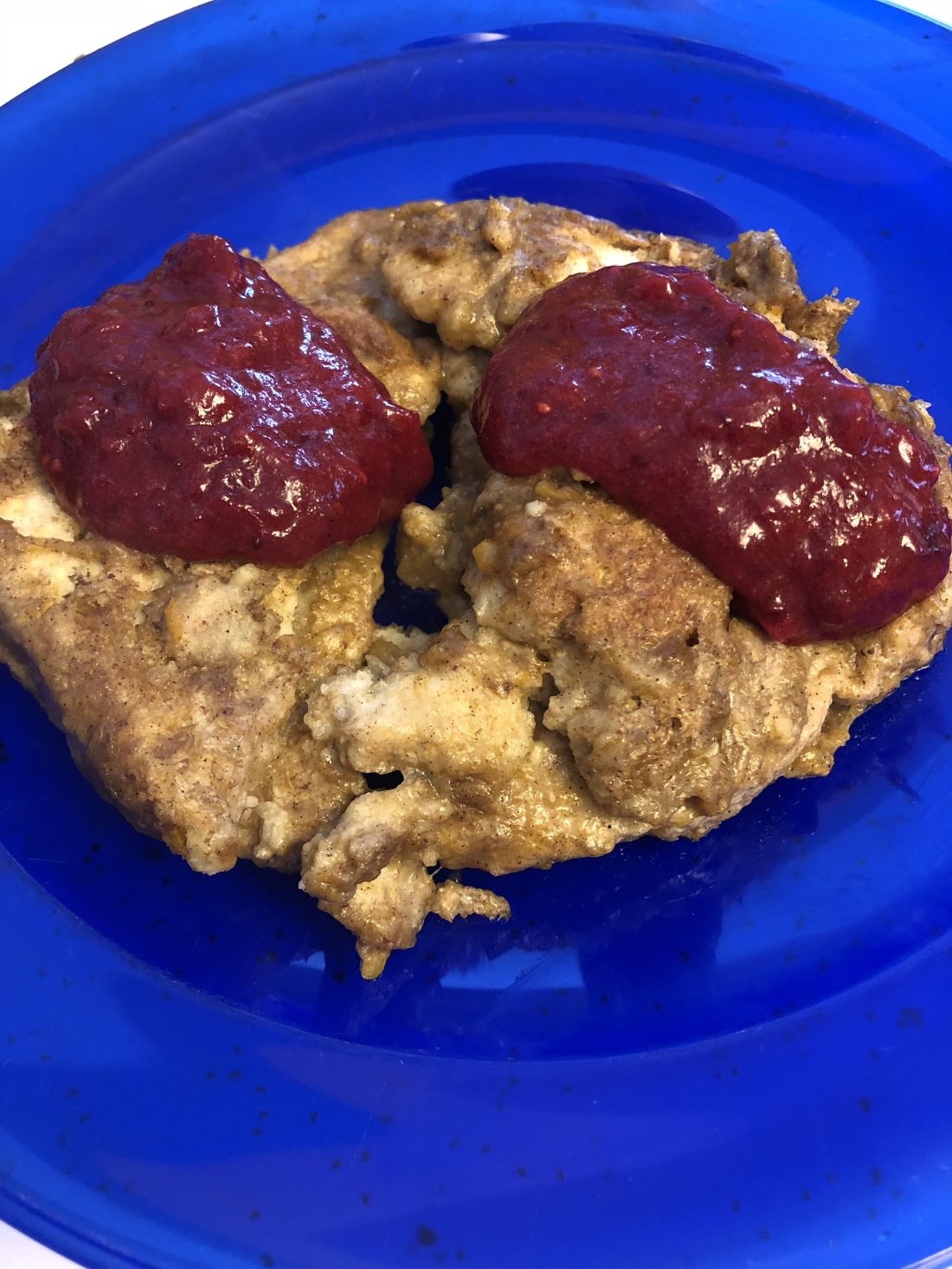 Stir to combine and refrigerate for at least 15 minutes. I let mine sit in the fridge for almost 2 hours before I got around to baking it. Spoon the mixture into the prepared pan and bake 50-60 minutes or until a toothpick inserted in the middle comes out clean. Let stand at least ten minutes before serving. Serve warm with your family’s favorite “nice” cream or non-dairy creamer if desired. Refrigerate any leftovers.